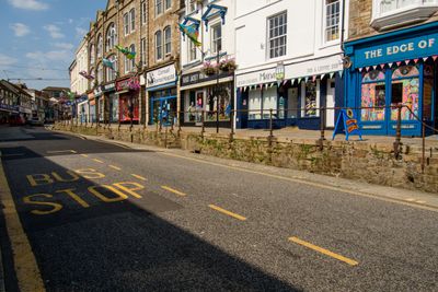 Raised Pavement, Steps And Railings, architectural structure in Penzance, Cornwall, UK