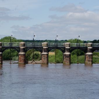 Dutton Sluice 150 metres north east of Dutton Lock, Grade II listed sluice on the River Weaver in the parish of Dutton, Cheshire West and Chester, Cheshire, WA4