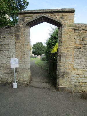 Churchyard Boundary Wall To North West, West And South West Of Church Of St Botolph And Gateway Arch, churchyard wall in Helpston, City of Peterborough, Cambridgeshire, UK