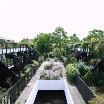Der Name des Anwesens ist mit seiner Straßenlage verbunden und die Architektur fördert nachbarschaftliche Begegnungen durch gemeinsame Gärten. Die Gestaltung ermöglicht es Bewohnern, sich in halbprivaten Bereichen zu treffen, was das Gemeinschaftsleben im Alltag unterstützt.