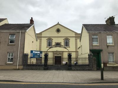 Entrance gates and rails to Penuel Baptist Chapel, Grade II listed building in Carmarthenshire. Situated some 10m NE of junction with Penuel Street