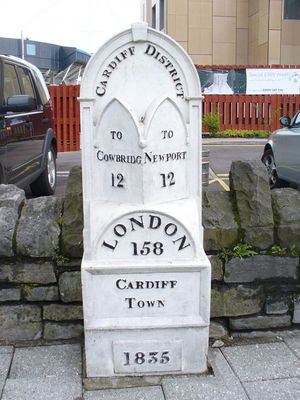Mile Post at NW End of Westgate Street, Grade II listed building in City and County of Cardiff. At NW end of Westgate Street