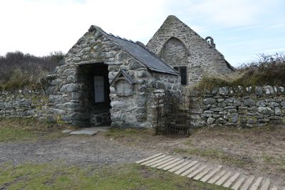 Lychgate at the Church of St Tanwg, Grade II listed building in Gwynedd. Located at the coast to SSW end of the village of Llandanwg. The lychgate is directly E of the Church of St Tanwg