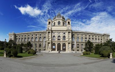 Das Museumsgebäude verfügt über eine 65 Meter hohe Kuppel mit einer bronzenen Helios-Statue, neben seinem identischen Zwilling, dem Kunsthistorischen Museum.