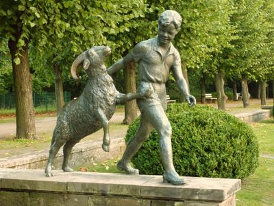 Junge mit Widder, Skulptur im Tierpark Berlin