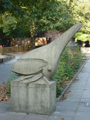 Buckelzirpe, Skulptur aus Kunststein von Klaus Tilke im Tierpark Berlin