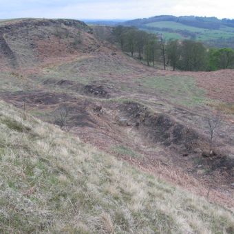 Der Verteidigungsgraben am Croy Hill blieb wegen des extrem harten Basalts und Dolerits unausgehoben.