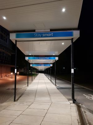 Covered walkway linking the former Langwith College to Central Hall and Vanbrugh College, University of York