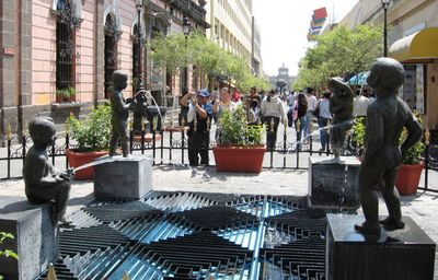 Der Brunnen der spielenden Kinder ist ein Bronzebrunnen auf der Plaza Tapatía mit mehreren Kindskulpturen des Künstlers Miguel Miramontes. Das Wasser fließt durch diese verspielten Figuren, die das Zentrum des Platzes prägen.