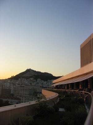 Die Galaxy Bar befindet sich im zwölften Stock des Hilton Hotels und bietet von ihrer Außenterrasse Ausblicke über Athen, die Akropolis und den Lykabettus.