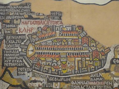 Das im 6. Jahrhundert geschaffene Bodenmosaik stellt die älteste bekannte geografische Darstellung von Jerusalem und den umliegenden biblischen Gebieten dar.