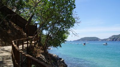 Die Anreise zum Strand erfolgt per Wassertaxi mit regelmäßigen Abfahrten vom Pier Zihuatanejo oder über einen markierten Wanderweg von Playa La Ropa.