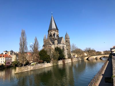 Die Temple Neuf wurde in den frühen 1900er Jahren unter deutscher Herrschaft erbaut und zeigt die neoromantische Architektur anderer europäischer Kirchen jener Zeit. Dieses Gebäude ist ein Beweis für die kulturellen und historischen Schichten, die Metz geprägt haben.