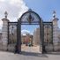 Das steinerne Portal markiert den Eingang der ehemaligen Nationalen Waffenmanufaktur mit klassischen Architekturelementen und militärischen Designmotiven.