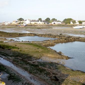 Diese Bucht beherbergt zahlreiche Austernbänke entlang der Küste, wo lokale Produzenten Schalentiere in den nährstoffreichen Gewässern der Bucht von Quiberon züchten.