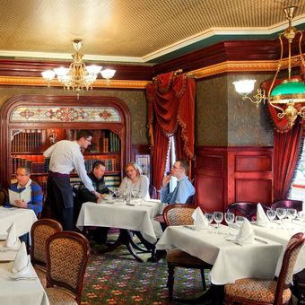 Das Restaurant bietet traditionelle amerikanische Küche mit Steaks, Burgern und Meeresfrüchten in einem gehobenen Ambiente.