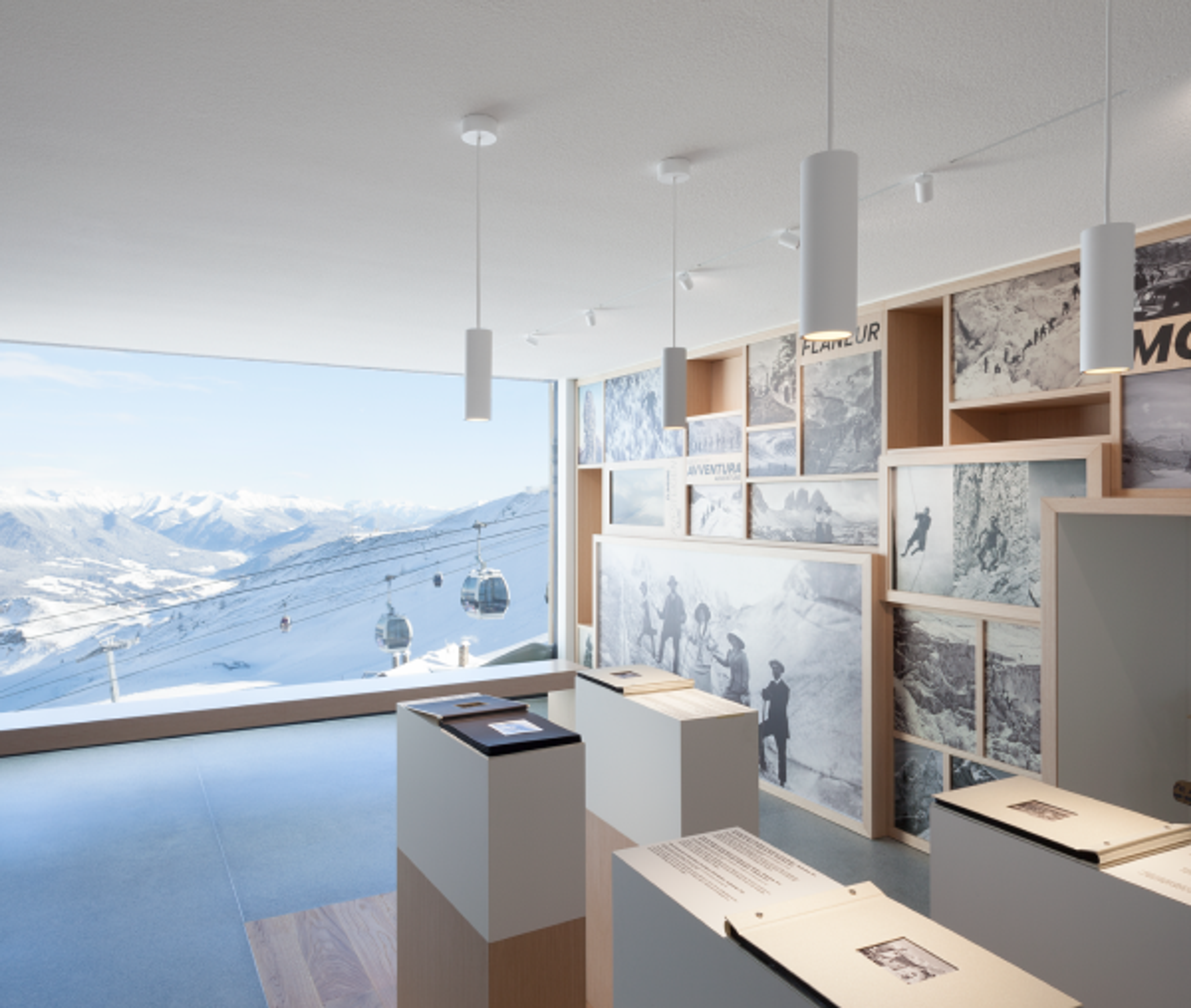 Das LUMEN Museum zeigt Bergfotografie-Sammlungen in verschiedenen Ausstellungsräumen und präsentiert Perspektiven auf Alpenlandschaften und menschliche Interaktionen.