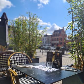 Le Vesuvio ist ein italienisches Restaurant am Grand Place von Béthune, das neben dem historischen Rathaus liegt. Das Lokal hat große Fenster mit Blick auf die Architektur des Platzes und die umliegenden Gebäude der Stadt.