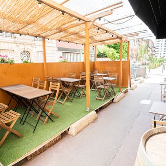 Das Lokal liegt nahe dem Marché aux Puces von Saint-Ouen, der sich zu einem der größten Antiquitätenmärkte der Welt entwickelte.