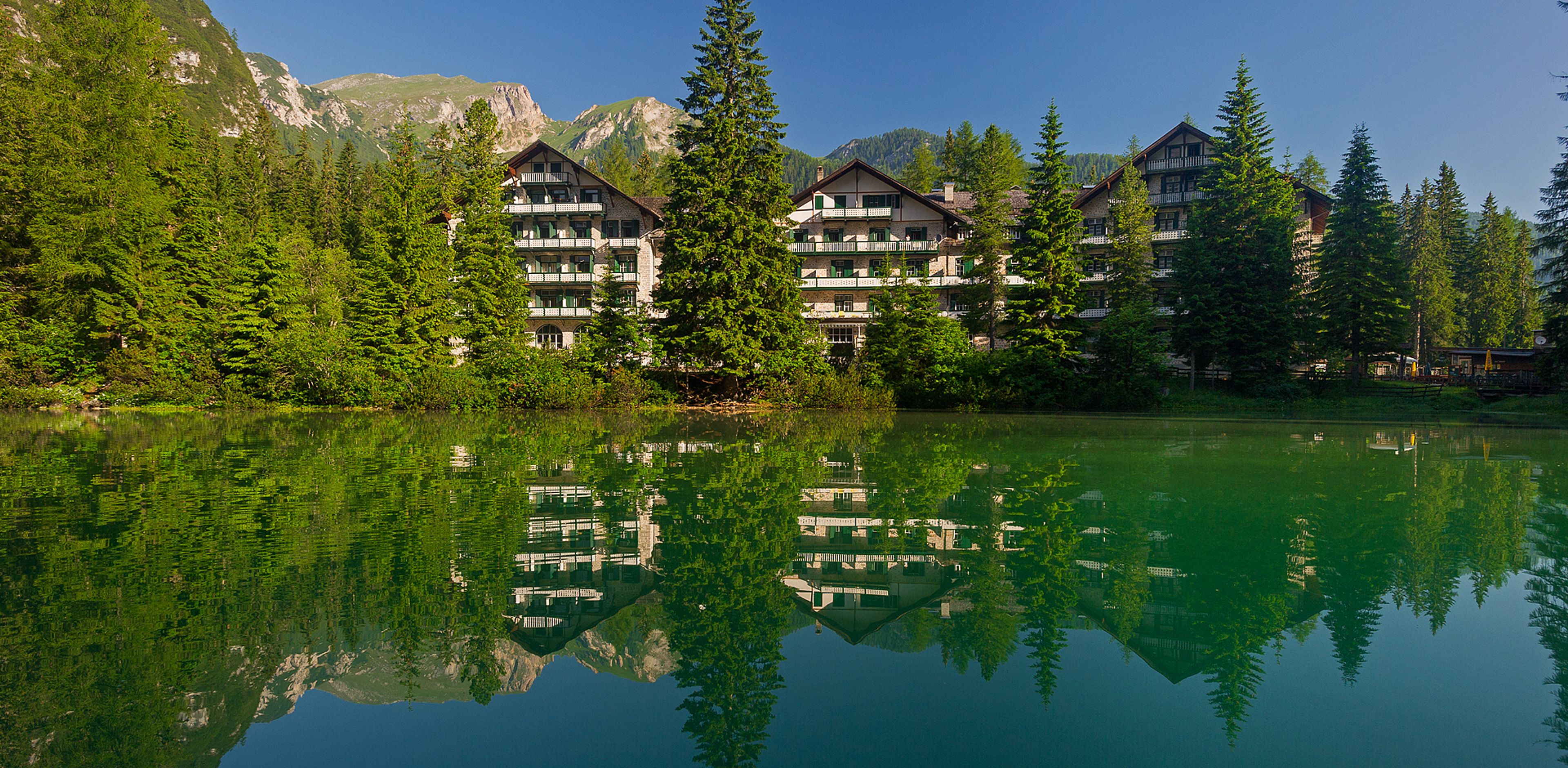 Dieses familiengeführte Hotel ist die einzige Übernachtungsmöglichkeit am Pragser Wildsee und verwaltet den Zugang zum Bootssteg.