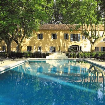 Der 18-Loch-Golfplatz erstreckt sich über 5500 Meter durch die Alpilles-Landschaft und integriert natürliche Elemente wie Steinmauern und Olivenhaine.
