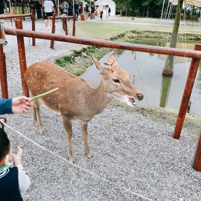 Der Park erstreckt sich über natürliches Gelände mit Bereichen für Hirsche, Kaninchen und Schafe, wo Besucher die Tiere füttern können.