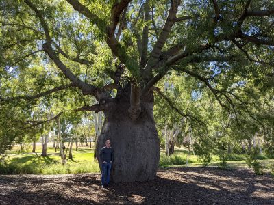 Der Baum repräsentiert das Naturerbe von Queensland und benötigt sechs Personen, um seinen Stamm zu umfassen, der jährlich um einen Zentimeter wächst.