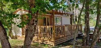 Der Campingplatz verfügt über moderne Einrichtungen wie klimatisierte Holzhütten, Mobilheime, ein beheiztes Schwimmbad und einen Brotlieferservice.