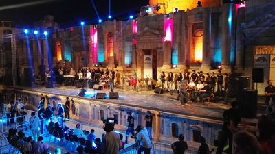 Das Theater wurde um 90 n. Chr. während der Herrschaft von Kaiser Domitian eingeweiht, wobei vermögende Bürger von Gerasa zur Finanzierung beitrugen.