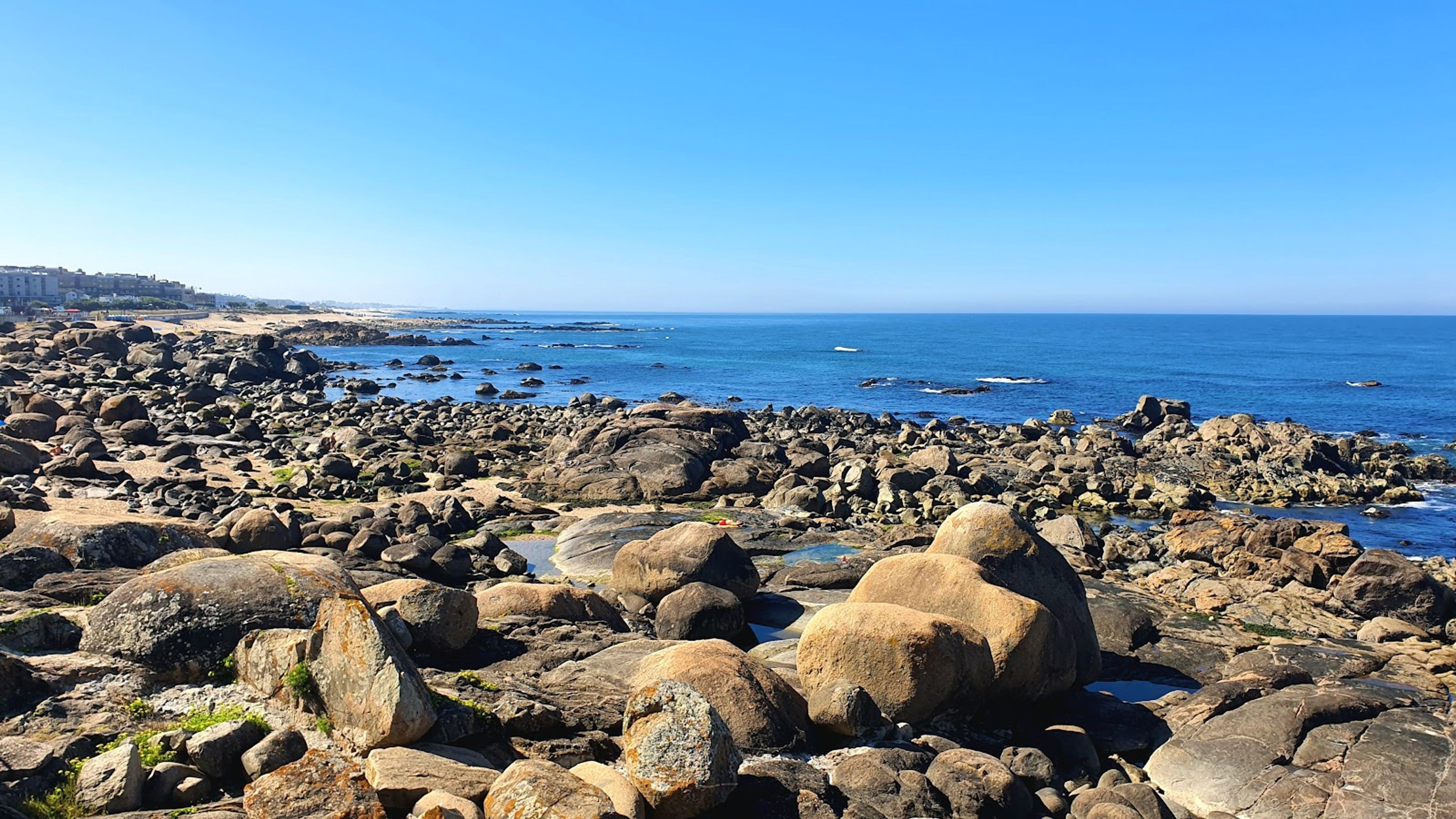 Der nördliche Abschnitt von Praia de Lavadores weist eine über 500 Meter lange Felsformation entlang der Küste auf, die natürliche Barrieren bildet.