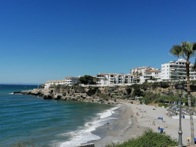 Playa El Salón, Mittelmeerstrand in Nerja, Spanien
