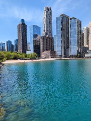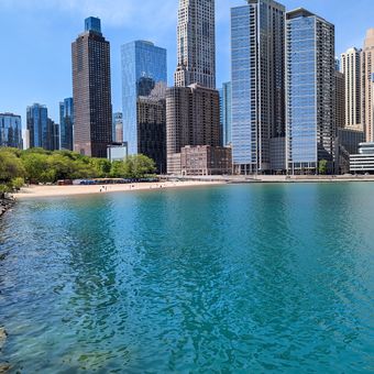 Der Ohio Street Beach erstreckt sich entlang des Lake Michigan mit nördlicher Ausrichtung und bietet Schwimmern Zugang zu achthundert Metern geschütztem Schwimmbereich.