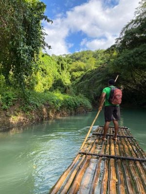 Die lokalen Kapitäne bauen traditionelle Flöße aus einheimischem Bambus und bewahren damit eine handwerkliche Technik, die mehrere Generationen jamaikanischer Seefahrtstraditionen umfasst.