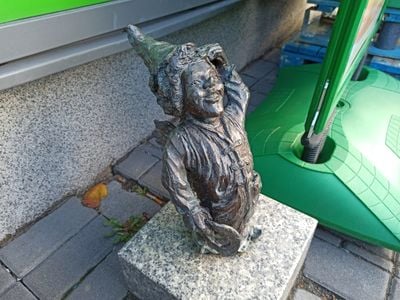 Die 2016 installierte Zwergstatue setzt die 2001 begonnene Tradition fort, die sich auf die antikommunistische Orange Alternative bewegung bezieht.