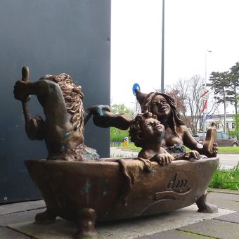 Die Zwergenfamilie besteht aus drei Figuren: Vater Baleusz, Mutter Balea und ihr Kind Balejątko, aufgestellt vor der dm-Drogerie.