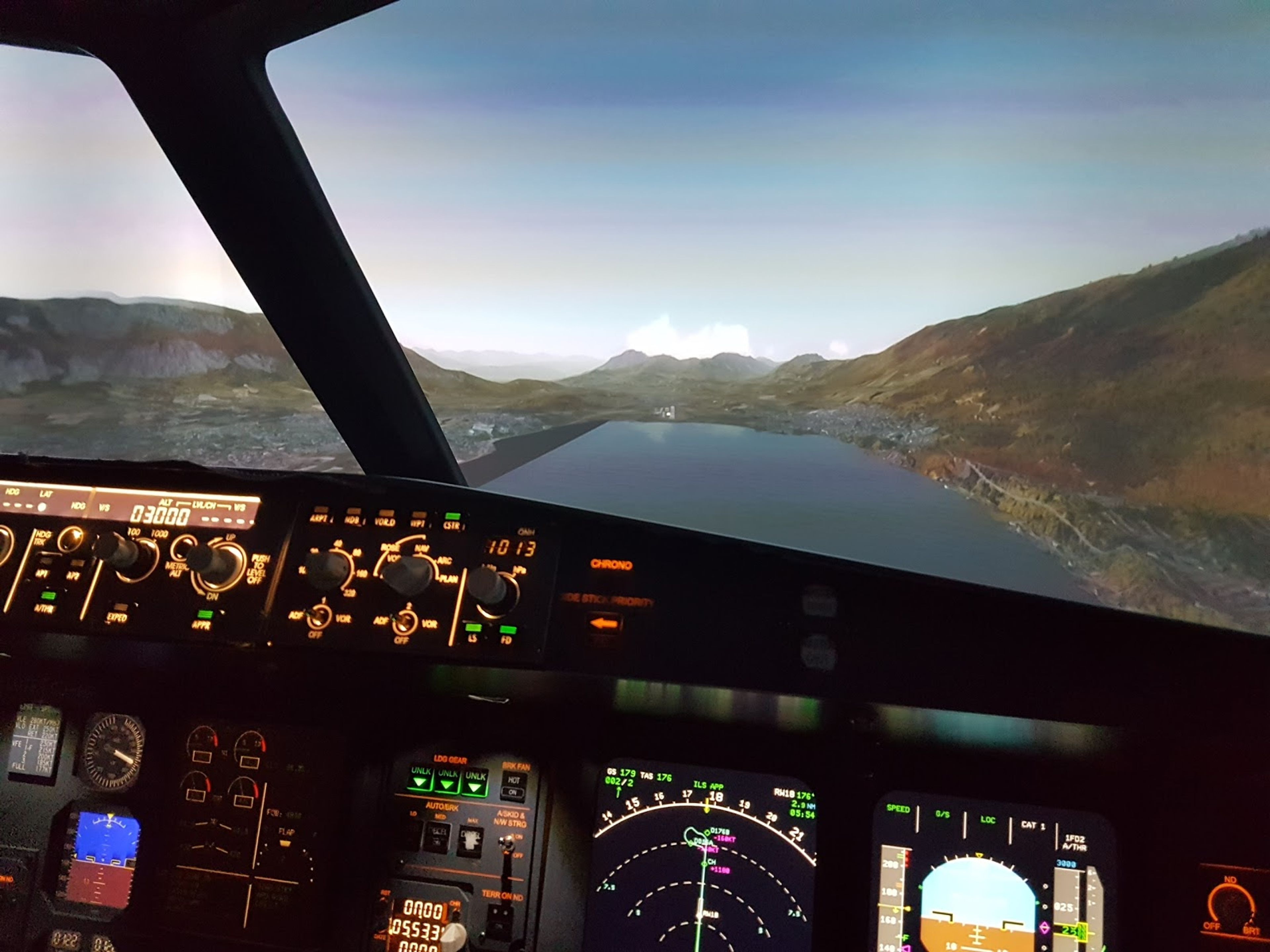 AviaSim Bordeaux bietet einen Airbus A320-Simulator mit 180-Grad-Panoramabildschirm und professionellen Fluglehrern, die die Sitzungen begleiten.