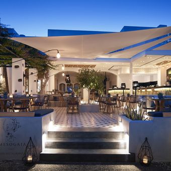 Das Restaurant des Hotels bezieht Zutaten von lokalen Bauern und Fischern, um traditionelle Santorini-Gerichte nach überlieferten griechischen Rezepten zuzubereiten.