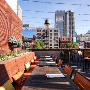 Chicago verfügt über eine bemerkenswerte Auswahl an Dachbars, die sich auf den höchsten Gebäuden befinden und einen Blick auf die markante Architektur der Stadt bieten. Von River North bis zur Loop-Schleife ermöglichen diese Höhenorte die Betrachtung des Michigansees, des Chicago River und der Türme, die die Skyline der drittgrößten Stadt der USA prägen. Diese Dachterrassen bieten vielfältige Erfahrungen: zeitgenössische peruanische Küche im Cabra, handgemixte Cocktails auf dem Kennedy Rooftop mit direktem Blick auf die Türme im Zentrum oder die Originalität des Homestead on the Roof, das seine eigenen Zutaten hydroponisch anbaut. Das Cindy's Rooftop, im Obergeschoss des Chicago Athletic Association Hotels, bietet einen direkten Blick auf den Millennium Park. Einige Bereiche setzen auf klare Themen, wie das Lonesome Rose mit Westamerikanischem Dekor, während andere den Industriestil bevorzugen, wie das Chateau Carbide mit sichtbaren Metallstrukturen. Ob Sie einen Ort suchen, um am Abend ein Getränk zu genießen, oder im Sommer unter freiem Himmel zu speisen, diese Einrichtungen sind exzellente Beobachtungspunkte, um Chicago aus einem anderen Blickwinkel zu entdecken, fernab vom Trubel der Straßen.