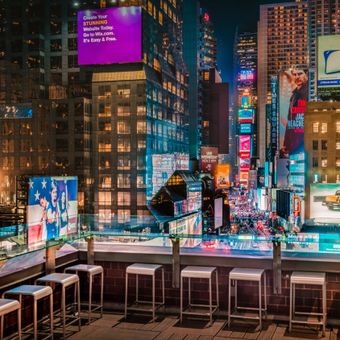 Diese Lokalität repräsentiert die zeitgenössische New Yorker Sozialszene, wo Dachbars als Treffpunkte für Einheimische und Touristen dienen, die erhöhte urbane Erlebnisse suchen.
