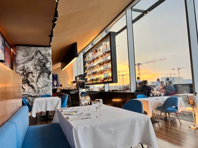 Das Restaurant operiert innerhalb des kulturellen Zentrums Fondazione Prada und bietet Gästen die Möglichkeit, zeitgenössische Kunstausstellungen neben raffinierter italienischer Küche in einer anspruchsvollen künstlerischen Umgebung zu erleben.