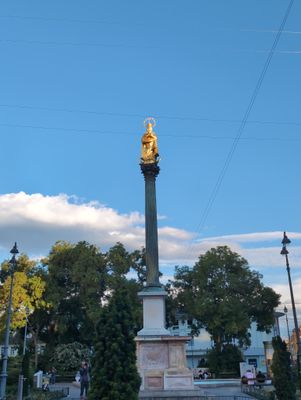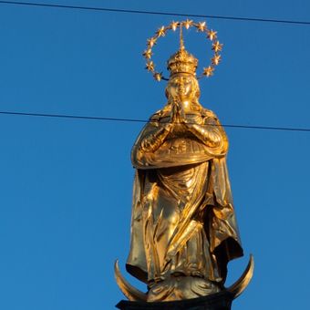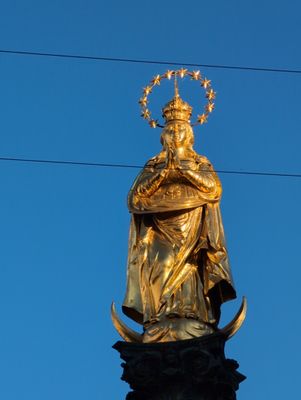 Stadtpfarrhof Hl. Blut mit Sandsteinfigur Maria und zwei Steinskulpturen