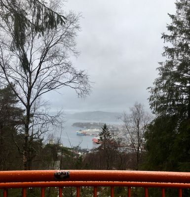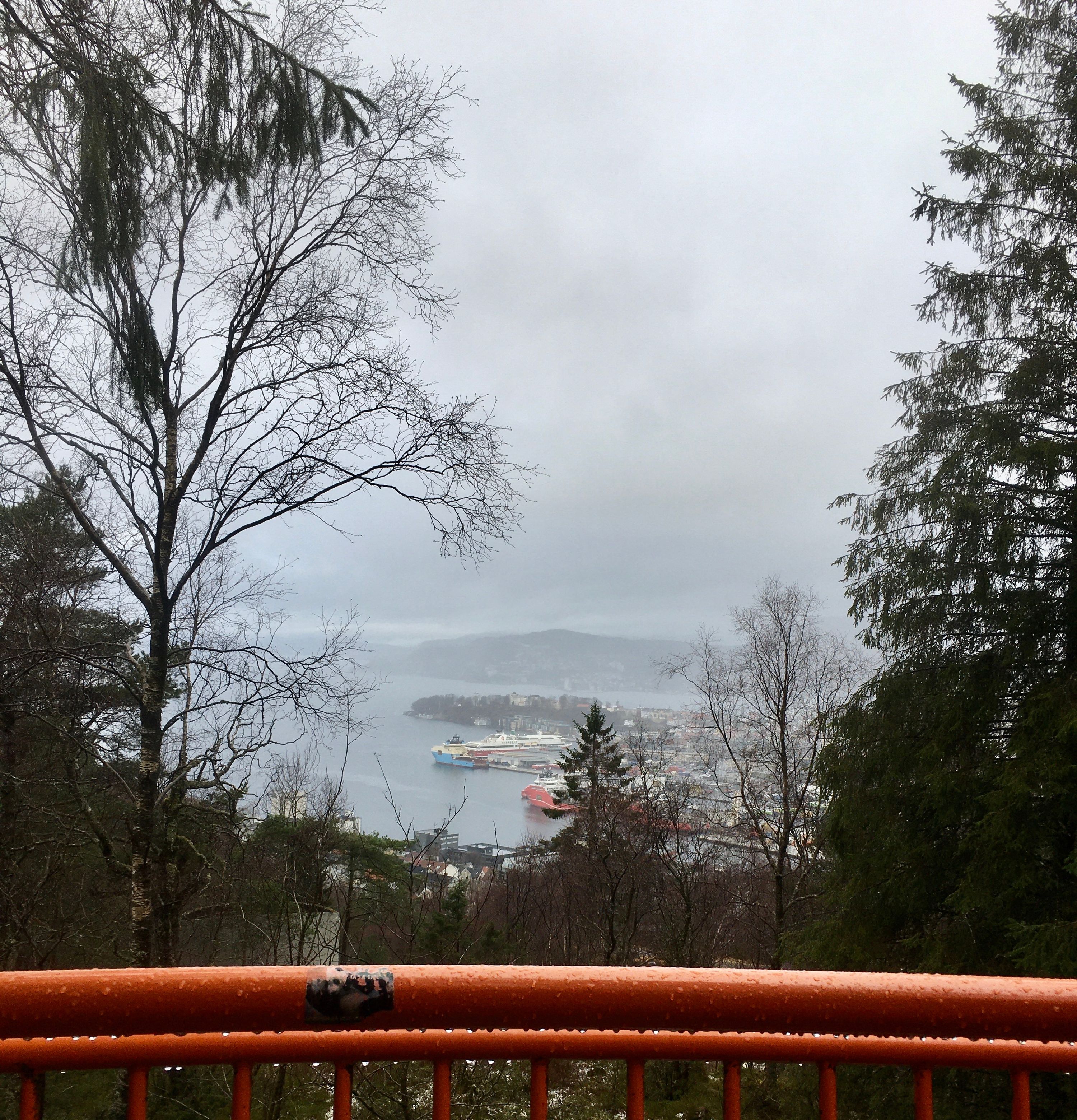 , Aussichtspunkt über norwegische Fjorde und Berge.