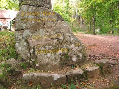Inschrift: Zimmer-Platz bei Erbauung der Burg Scharfeneck später Schlossgarten P.W.V.