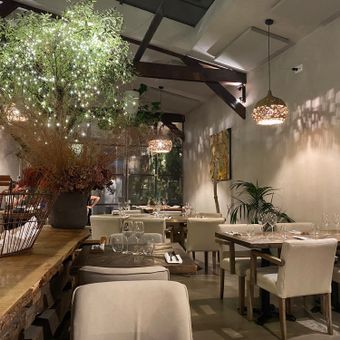 Gypse bietet zeitgenössische französische Küche mit internationalen Einflüssen in einem modernen Speiseraum mit bequemen Sitzgelegenheiten und künstlerischen Dekorelementen im gesamten Restaurant.