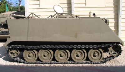 Der M113 ist ein gepanzerter Truppentransporter, der etwa 4,86 Meter lang, 2,54 Meter breit und 2,54 Meter hoch ist und über eine Aluminiumpanzerung verfügt, die für den Transport von Truppen konzipiert wurde.