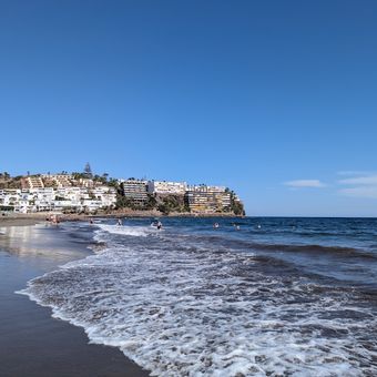 Playa de San Agustín ist ein Sandstrand an der Südküste von Gran Canaria mit feinem, weichem Sand und sanften Wellen. Der Strand erstreckt sich über etwa 600 Meter und verfügt über Liegen, Sonnenschirme, Duschen und Sanitäranlagen sowie ein angrenzendes Wegenetz, das zur benachbarten Playa del Inglés führt.