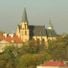 Die Sankt-Apollinaris-Kirche steht auf dem Vetrov-Hügel mit einem 42 Meter hohen Turm mit gotischen Spitzfenstern und rechteckigen Öffnungen.