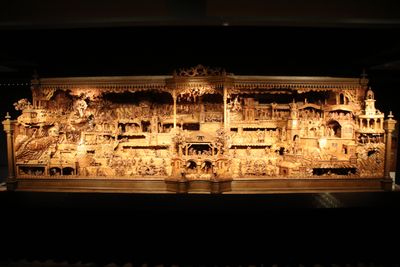 Die Holzkrippe misst 6,89 Meter in der Länge, 1,89 Meter in der Breite und 2,35 Meter in der Höhe, mit über 2000 geschnitzten Figuren und Teilen.