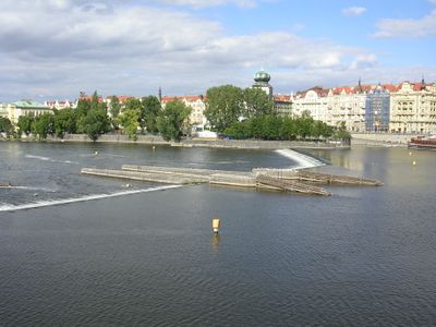 Die Slovanský-Insel erstreckt sich 350 Meter entlang der Moldau mit Gartenanlagen zwischen der Jirásek-Brücke und der Legion-Brücke.