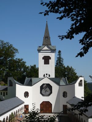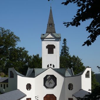 Maria-Hilf-Wallfahrtstätte, Wallfahrtskirche in Zlaté Hory, Tschechische Republik.